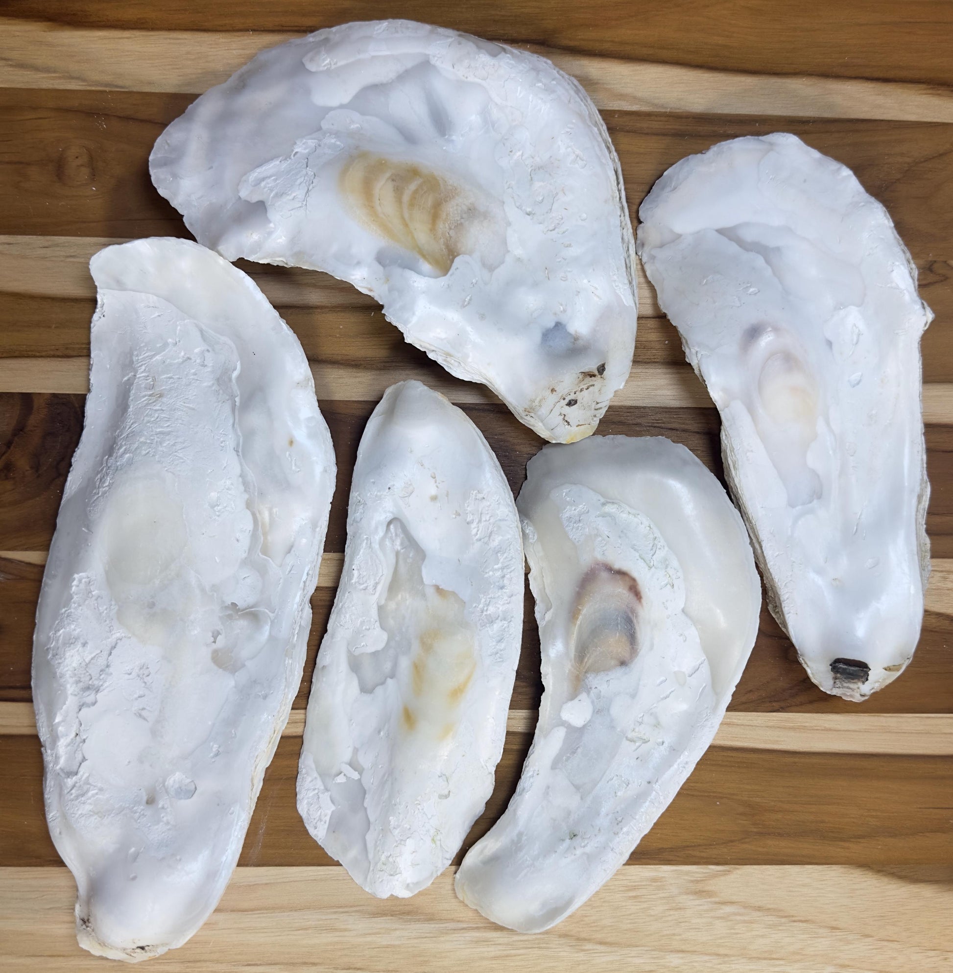 Additional Details: Our oyster shells are completely natural and untreated to maintain their authentic beauty. Each shell is unique, with slight imperfections and color variations are natural characteristics. Some residual shell flakes may be present as a testament to their natural origins. We advise handling the shells with care due to their potentially sharp edges.