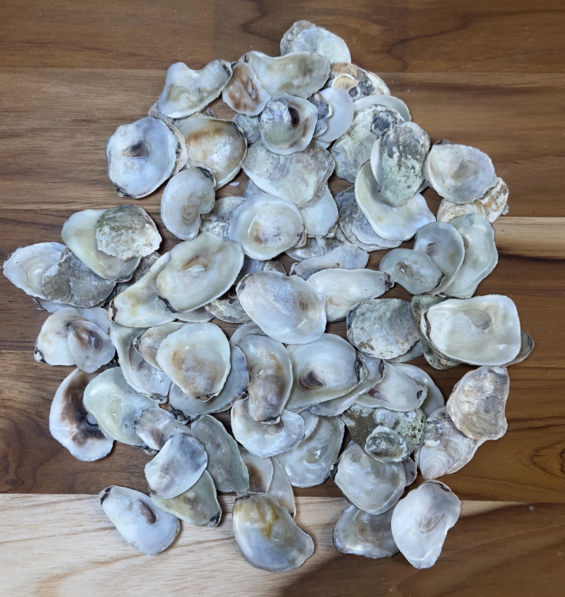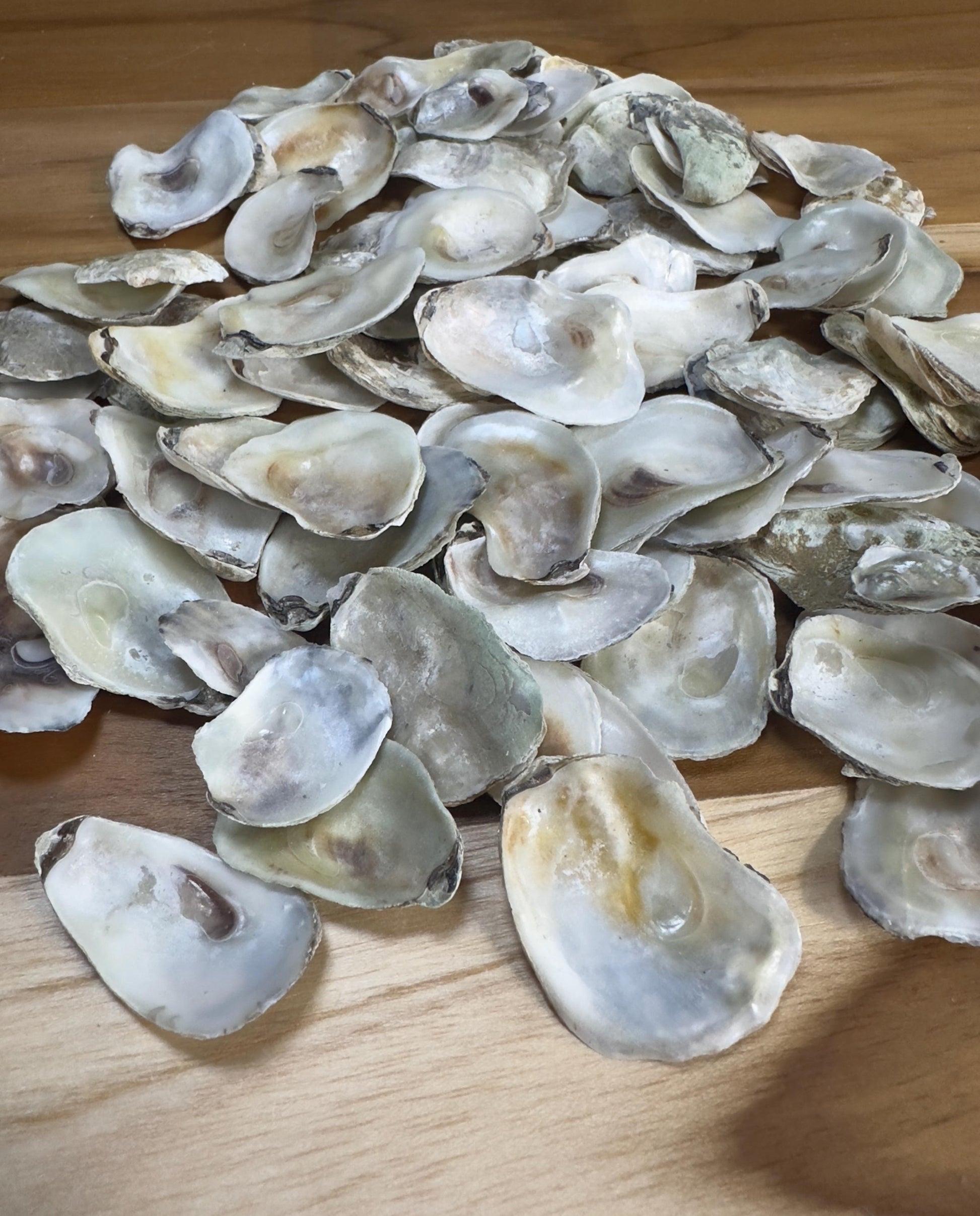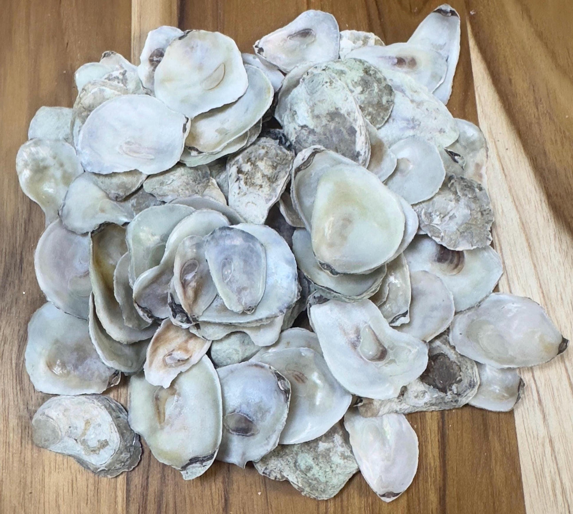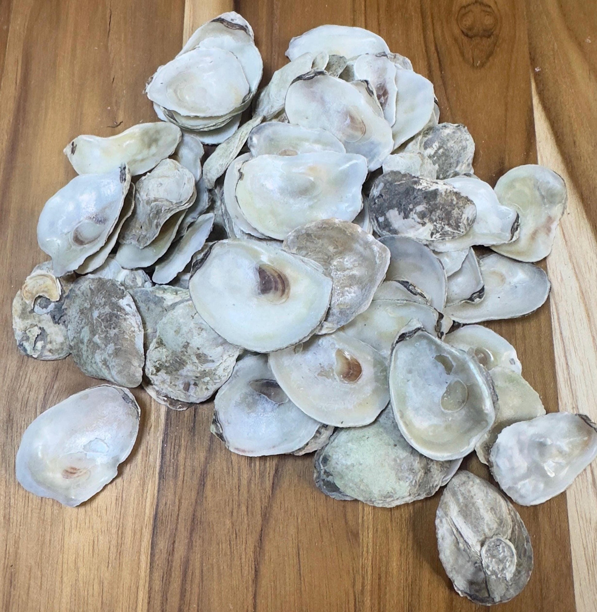 Product Description: 25 and 50 Extra Small Flat Oyster Shells (1 to 1.5 Inches Length) – Ideal for a Variety of Creative and Decorative Uses!